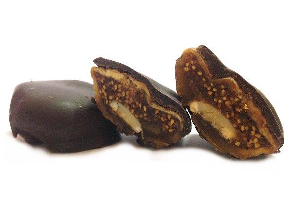 Ingredienti:fichi secchi,mandorla,ricoperto di surrogato di cioccolato contenente:zucchero,grassi vegetali idrogenati(palma),cacao magro in polvere,emulsionanti(E492),(E322),lecitina disoia,aroma.